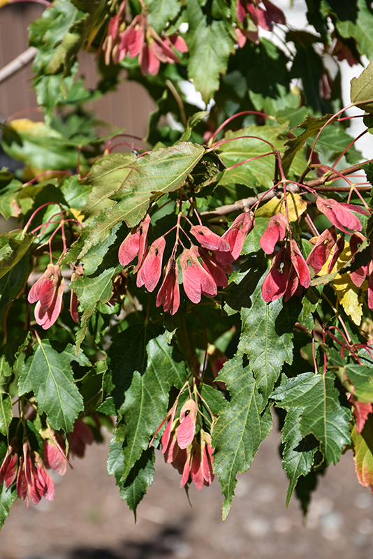 Flame Amur Maple Shrub is primarily grown for its highly ornamental fruit. It features abundant showy scarlet samaras in late summer. It has dark green deciduous foliage. The lobed leaves turn outstanding shades of scarlet and in the fall.