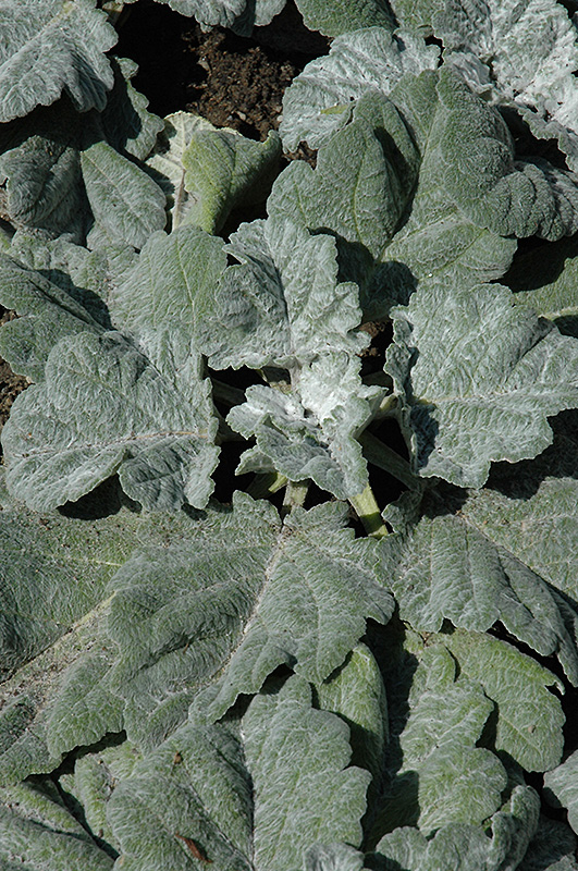 A striking variety that produces downy silver-gray rosettes of foliage the first year with flowering stems rising above the foliage the second year; tends to like light, gravelly, or sandy soil and is drought tolerant; avoid wet soils in winter