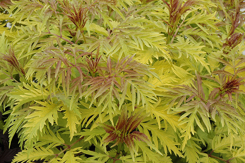 Golden Glow Elder features showy clusters of lightly-scented creamy white flowers held atop the branches in mid spring. It has attractive gold deciduous foliage which emerges antique red in spring. The ferny compound leaves are highly ornamental but do not develop any appreciable fall colour. The red fruits are held in abundance in spectacular clusters in early summer.