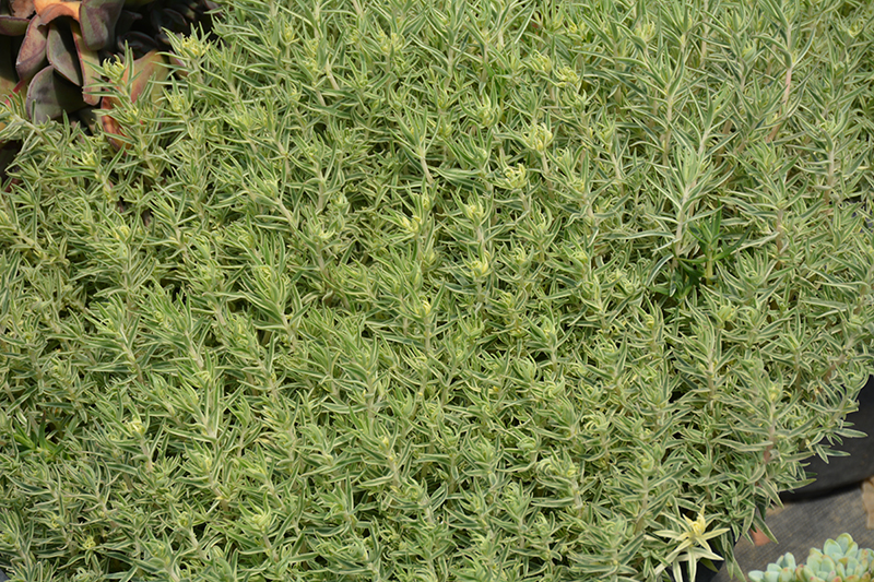 Narrow light green leaves with striking white edges greet the eye with this lovely groundcover; excellent for rock gardens and containers; rarely, if ever flowers but is quite impressive if it does; not as cold hardy as most sedums