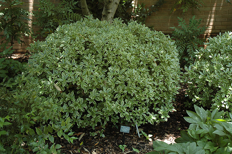 White Winter Daphne is a multi-stemmed evergreen shrub with a mounded form. Its relatively fine texture sets it apart from other landscape plants with less refined foliage.