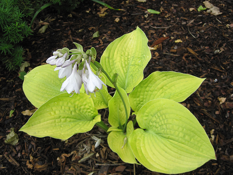 English Sunrise Hosta is a dense herbaceous perennial with tall flower stalks held atop a low mound of foliage. Its medium texture blends into the garden, but can always be balanced by a couple of finer or coarser plants for an effective composition.