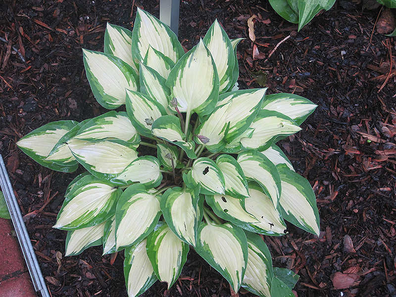Island Charm Hosta will grow to be about 10 inches tall at maturity extending to 20 inches tall with the flowers, with a spread of 12 inches. When grown in masses or used as a bedding plant, individual plants should be spaced approximately 10 inches apart. Its foliage tends to remain low and dense right to the ground. It grows at a slow rate, and under ideal conditions can be expected to live for approximately 10 years. As an herbaceous perennial, this plant will usually die back to the crown each winter, and will regrow from the base each spring. Be careful not to disturb the crown in late winter when it may not be readily seen!
