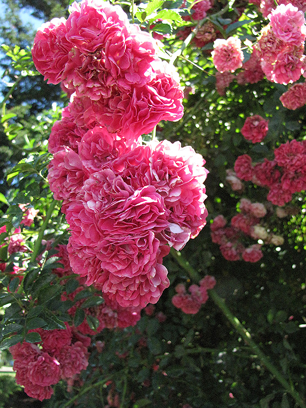 This vigorous rose is a hardy, reaching, large shrub rose producing showy clusters of beautiful cerise pink flowers; excellent for arbors, along walls or fences