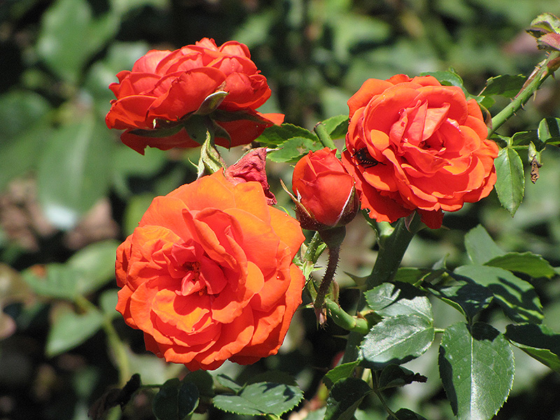Highlight Rose features showy clusters of fragrant double tomato-orange flowers at the ends of the branches from late spring to mid fall. The flowers are excellent for cutting. It has dark green deciduous foliage. The glossy oval compound leaves do not develop any appreciable fall colour.