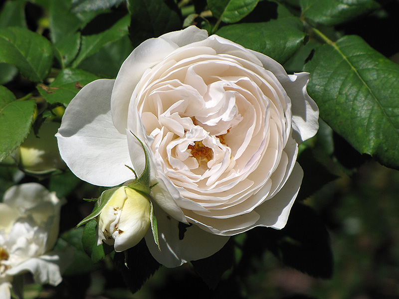 Rose Marie Rose is clothed in stunning fragrant fully double white flowers with shell pink centers at the ends of the branches from late spring to early fall. The flowers are excellent for cutting. It has forest green deciduous foliage. The oval compound leaves do not develop any appreciable fall colour.