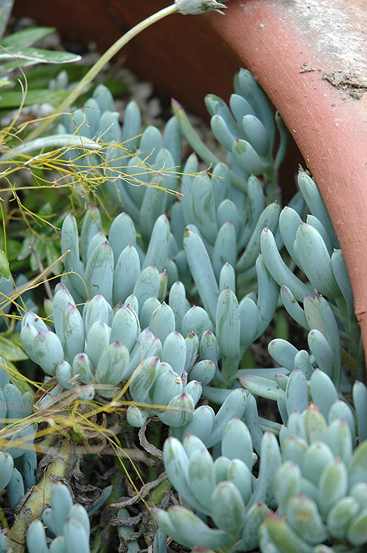 Blue Chalk Sticks Senecio is a fine choice for the garden, but it is also a good selection for planting in outdoor pots and containers. It is often used as a 'filler' in the 'spiller-thriller-filler' container combination, providing a mass of flowers and foliage against which the larger thriller plants stand out. Note that when growing plants in outdoor containers and baskets, they may require more frequent waterings than they would in the yard or garden.