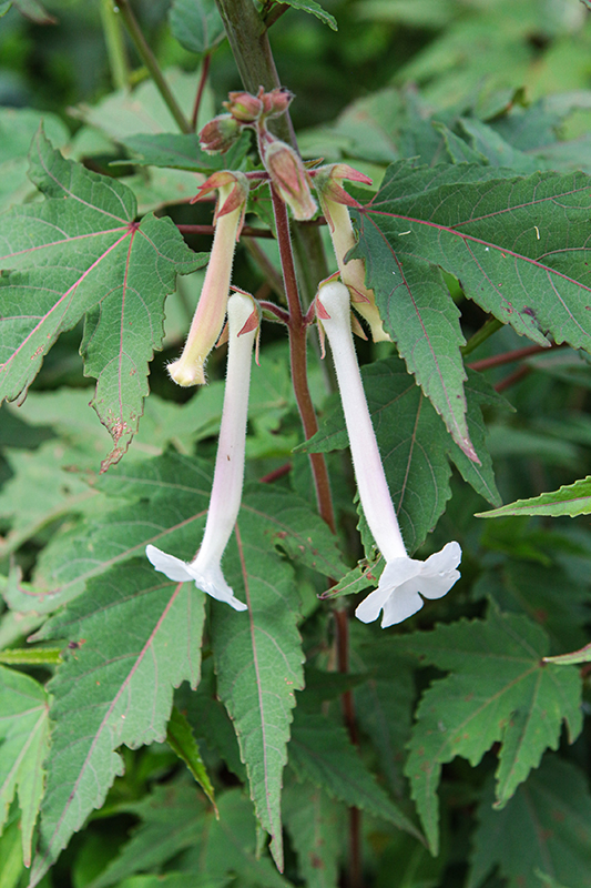 Hardy White Gloxinia will grow to be about 12 inches tall at maturity extending to 24 inches tall with the flowers, with a spread of 3 feet. It grows at a fast rate, and under ideal conditions can be expected to live for approximately 5 years. As an herbaceous perennial, this plant will usually die back to the crown each winter, and will regrow from the base each spring. Be careful not to disturb the crown in late winter when it may not be readily seen!