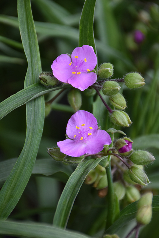 Carmine Glow Spiderwort will grow to be about 15 inches tall at maturity, with a spread of 18 inches. When grown in masses or used as a bedding plant, individual plants should be spaced approximately 14 inches apart. It grows at a fast rate, and under ideal conditions can be expected to live for approximately 10 years. As an herbaceous perennial, this plant will usually die back to the crown each winter, and will regrow from the base each spring. Be careful not to disturb the crown in late winter when it may not be readily seen! As this plant tends to go dormant in summer, it is best interplanted with late-season bloomers to hide the dying foliage.