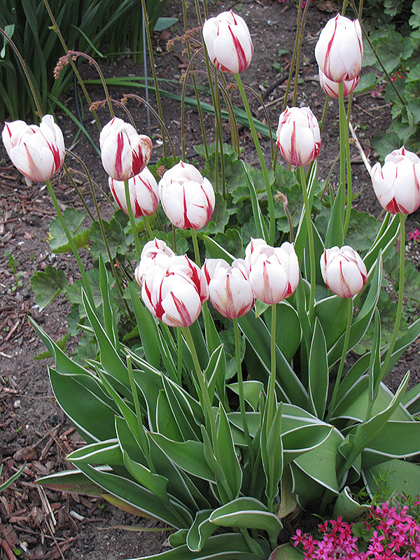 Carnaval de Rio Tulip will grow to be about 18 inches tall at maturity, with a spread of 14 inches. When grown in masses or used as a bedding plant, individual plants should be spaced approximately 7 inches apart. It grows at a medium rate, and under ideal conditions can be expected to live for approximately 10 years. As an herbaceous perennial, this plant will usually die back to the crown each winter, and will regrow from the base each spring. Be careful not to disturb the crown in late winter when it may not be readily seen! As this plant tends to go dormant in summer, it is best interplanted with late-season bloomers to hide the dying foliage.