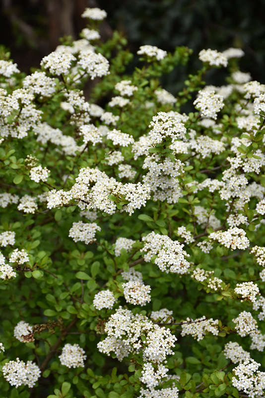 A wonderful compact rounded cultivar, with showy clusters of snowy white lacecap clusters of flowers in early spring followed by red fruit in summer that matures to black; adaptable, makes a great specimen or screen
