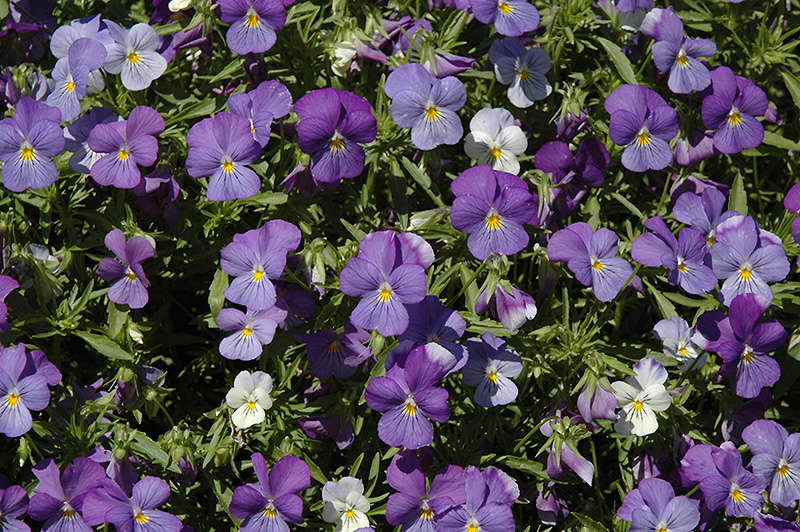 Rain Blue and Purple Pansy will grow to be about 10 inches tall at maturity, with a spread of 16 inches. When grown in masses or used as a bedding plant, individual plants should be spaced approximately 12 inches apart. Although it's not a true annual, this fast-growing plant can be expected to behave as an annual in our climate if left outdoors over the winter, usually needing replacement the following year. As such, gardeners should take into consideration that it will perform differently than it would in its native habitat.