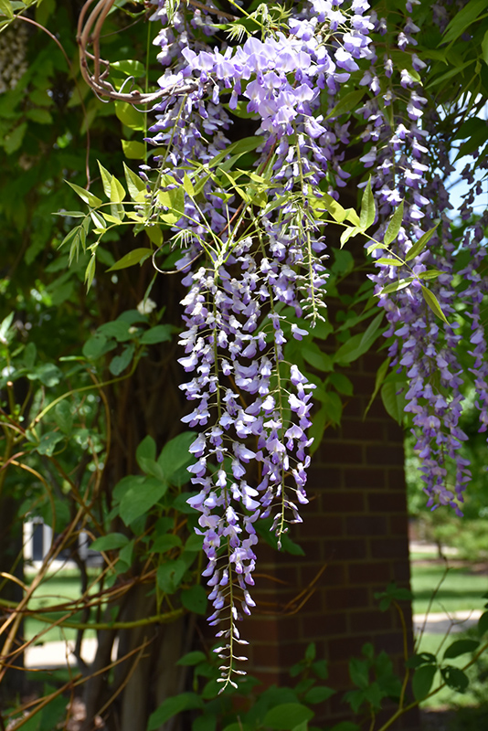 A wonderful vine when in flower, with extremely long chains of blue-violet flowers cascading from the branches in spring, simply breathtaking in bloom; vigorous almost to a fault, can grow quite woody, needs ample support and lots of sun