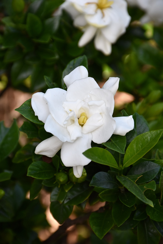 A wonderful Gardenia variety that is hardier than the species with some frost resistance; an upright bushy shrub with elegant, fragrant white flowers contrasted by deep green foliage; makes a fine hedge