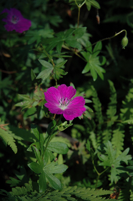 Purple Flame Cranesbill will grow to be about 10 inches tall at maturity, with a spread of 24 inches. When grown in masses or used as a bedding plant, individual plants should be spaced approximately 20 inches apart. Its foliage tends to remain low and dense right to the ground. It grows at a medium rate, and under ideal conditions can be expected to live for approximately 10 years. As an herbaceous perennial, this plant will usually die back to the crown each winter, and will regrow from the base each spring. Be careful not to disturb the crown in late winter when it may not be readily seen!
