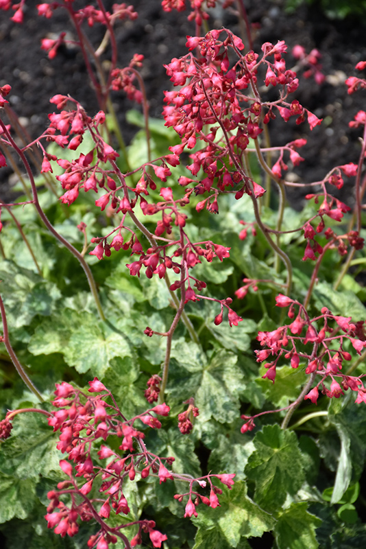 Arctic Mist Coral Bells features dainty spikes of red bell-shaped flowers rising above the foliage from late spring to early summer. Its attractive crinkled lobed leaves remain grayish green in colour with showy silver variegation throughout the year.