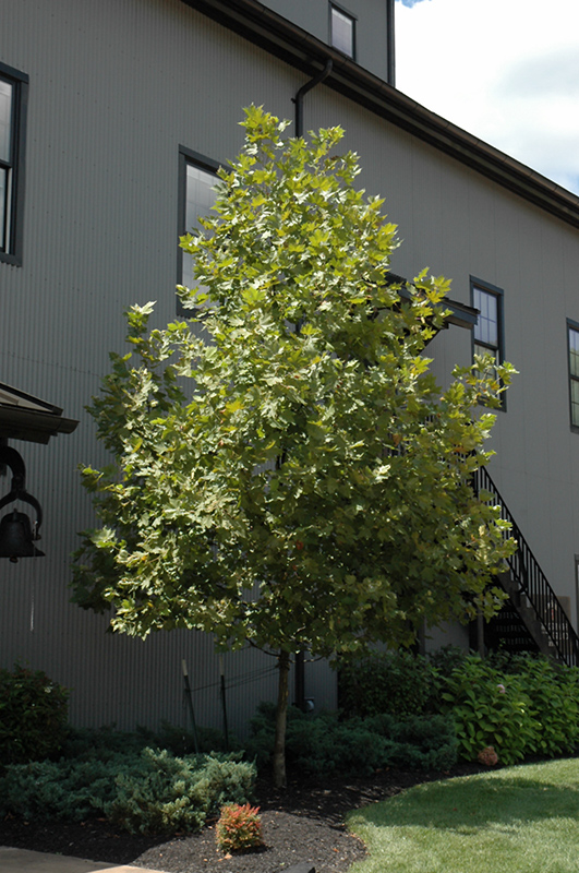 Columbia London Planetree is a deciduous tree with a distinctive and refined pyramidal form. Its relatively coarse texture can be used to stand it apart from other landscape plants with finer foliage.