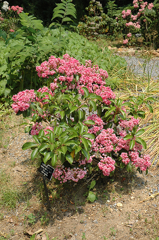 Carol Mountain Laurel is a dense multi-stemmed evergreen shrub with a more or less rounded form. Its average texture blends into the landscape, but can be balanced by one or two finer or coarser trees or shrubs for an effective composition.