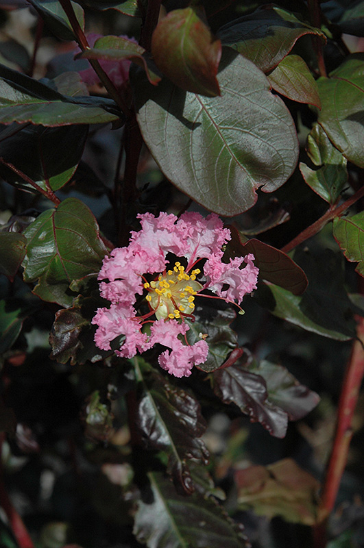 This beautiful and delicate looking crapemyrtle produces volumes of frilly pink blooms contrasting near purple foliage; a captivating focal point for the garden or border; can be grown as a small, multistemmed tree