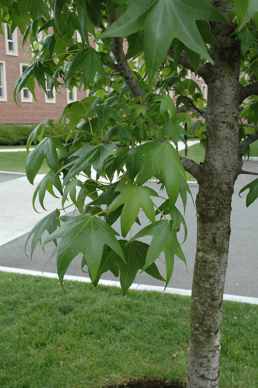 Grandmaster Sweet Gum has forest green deciduous foliage on a tree with a pyramidal habit of growth. The lobed palmate leaves turn an outstanding crimson in the fall. However, the fruit can be messy in the landscape and may require occasional clean-up.