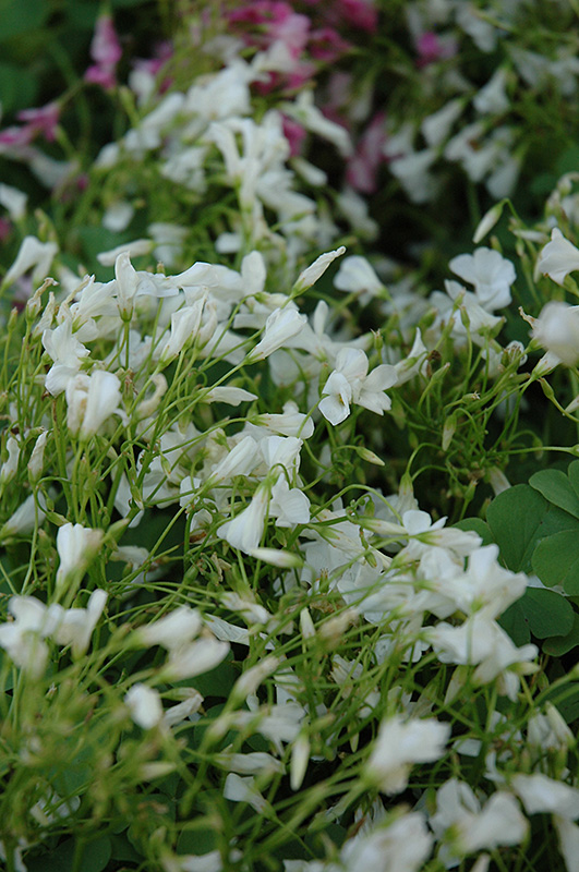 White Wood Sorrel will grow to be only 6 inches tall at maturity extending to 8 inches tall with the flowers, with a spread of 12 inches. When grown in masses or used as a bedding plant, individual plants should be spaced approximately 10 inches apart. Its foliage tends to remain low and dense right to the ground. Although it's not a true annual, this plant can be expected to behave as an annual in our climate if left outdoors over the winter, usually needing replacement the following year. As such, gardeners should take into consideration that it will perform differently than it would in its native habitat.