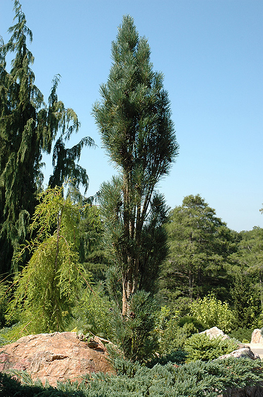 Blue Fastigiate Scotch Pine is a dwarf conifer which is primarily valued in the landscape for its rigidly columnar form. It has attractive silvery blue evergreen foliage. The needles are highly ornamental and remain silvery blue throughout the winter. The shaggy orange bark is extremely showy and adds significant winter interest.