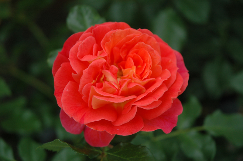 Bushy and upright with an arching form, this floribunda rose produces striking orange blooms with yellow reverses that mature to pink, creating tremendous visual impact when massed in the garden; blooms repeat all season long and make splendid cut flowers