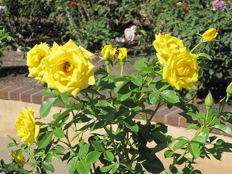 One of the best yellow floribundas, this vigorous, compact rose puts on a show with cluster after cluster of sunny blooms, and they make splendid cut flowers