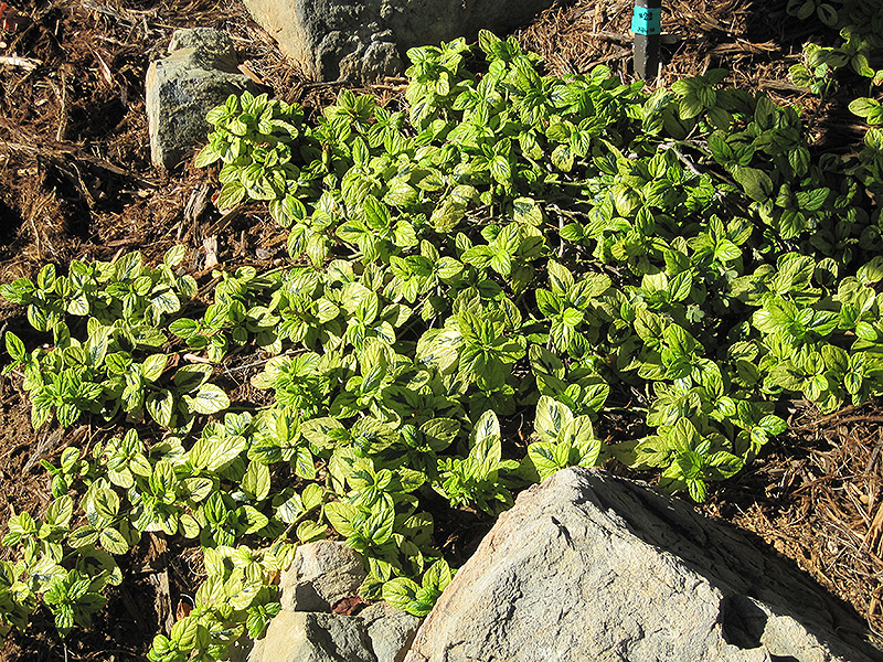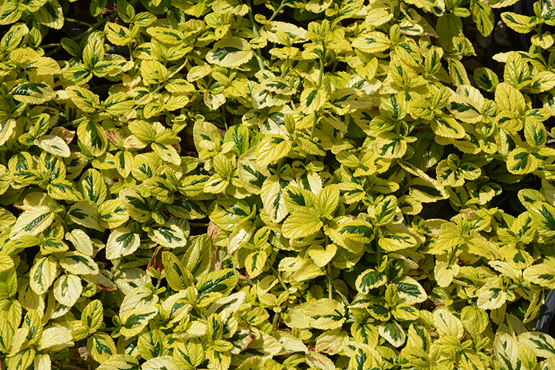 A very dense, low growing groundcover with chartreuse-yellow foliage with splashes of dark green; a prolific bloomer,beautiful indigo blue flower clusters add color in the spring; perfect for border edges and rock gardens