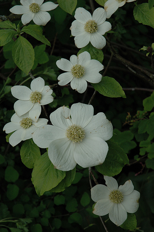 A striking accent tree which features exceptionally showy white flowers in mid spring, and often a second flush in fall; the rest of the year features showy mottled bark and a neat growth habit; requires rich, well drained acidic soil