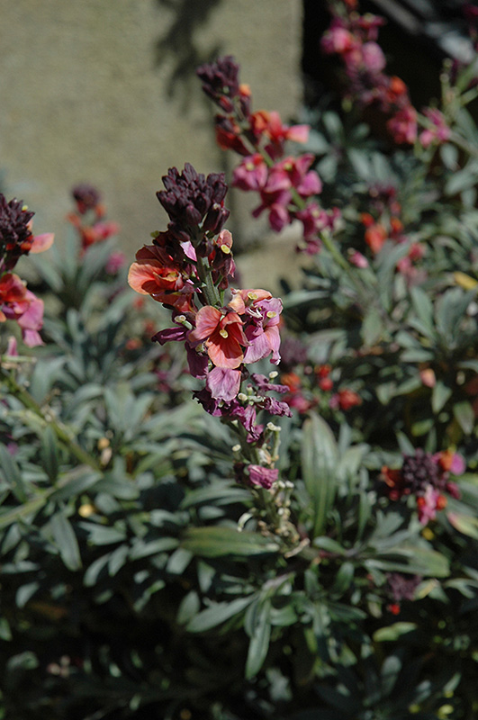 Julian Orchard Wallflower features showy clusters of fragrant purple flowers with salmon overtones rising above the foliage from mid spring to early fall. Its sword-like leaves remain grayish green in colour throughout the year.