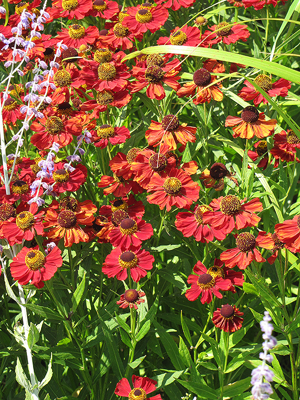 Rubinzwerg Sneezeweed has masses of beautiful red daisy flowers with dark brown eyes and orange streaks at the ends of the stems from mid summer to early fall, which are most effective when planted in groupings. The flowers are excellent for cutting. Its narrow leaves remain green in colour throughout the season.