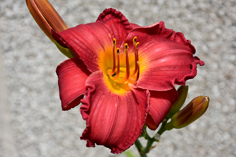 Eye catching crimson-pink trumpets with golden throats; provides a bold contrast to other plants; sturdy, strong, easy to care for, great grassy texture and form; a stunning display when massed in the garden