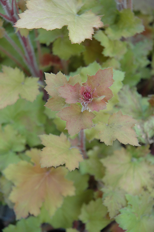 Big Top Gold Coral Bells will grow to be about 16 inches tall at maturity, with a spread of 26 inches. When grown in masses or used as a bedding plant, individual plants should be spaced approximately 22 inches apart. Its foliage tends to remain dense right to the ground, not requiring facer plants in front. It grows at a medium rate, and under ideal conditions can be expected to live for approximately 10 years. As an evegreen perennial, this plant will typically keep its form and foliage year-round.