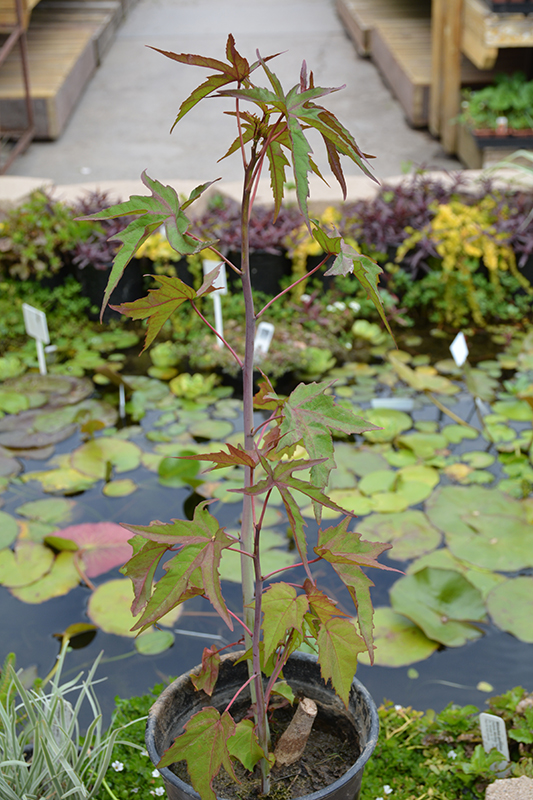 Scarlet Rose Mallow features bold red star-shaped flowers at the ends of the stems from early summer to early fall. Its small serrated lobed compound leaves emerge red in spring, turning green in colour throughout the season.