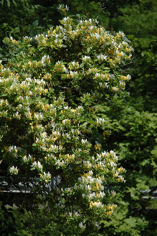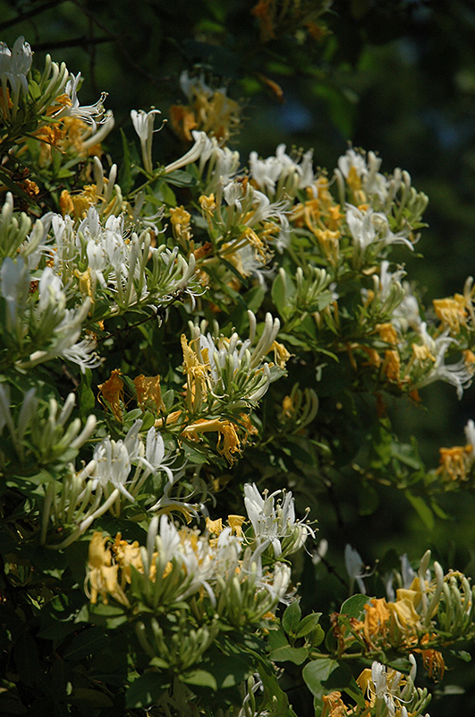 Yellow Honeysuckle is covered in stunning clusters of fragrant yellow trumpet-shaped flowers with orange overtones at the ends of the branches from late spring to late summer. It has dark green evergreen foliage. The oval leaves remain dark green throughout the winter. It produces black berries from late summer to late fall.