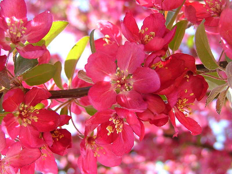 A beautiful and hardy cultivar with an nice rounded habit, covered in deep rose-red blooms in spring; fruit is cherry-red, small and persistent and adds ornamental value for fall and winter; beautiful yellow tones greet you in the fall
