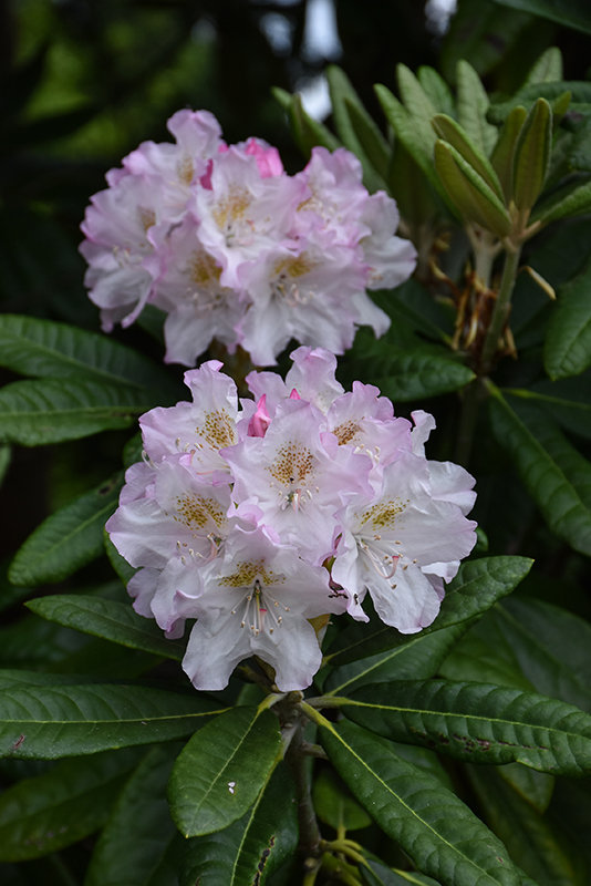 A relatively new broadleaf evergreen shrub featuring the most elegant whitish-pink flowers in spring, coarse dark foliage and a mounded habit; absolutely must have well-drained, highly acidic and organic soil, use plenty of peat moss when planting