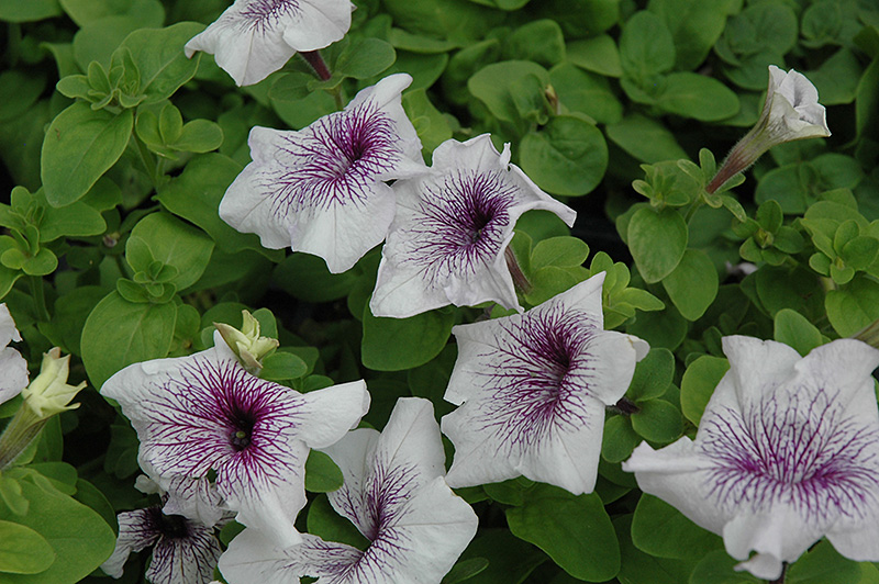 Bravo Silver Vein Petunia is a dense herbaceous annual with a mounded form. Its medium texture blends into the garden, but can always be balanced by a couple of finer or coarser plants for an effective composition.