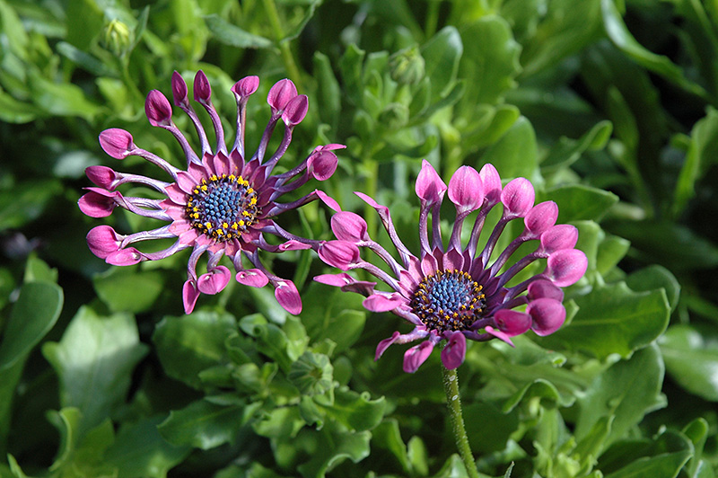 Serenity Lavender Bliss African Daisy is blanketed in stunning lavender daisy flowers with curiously fluted lavender tips at the ends of the stems from early summer to mid fall. The flowers are excellent for cutting. Its spiny narrow leaves remain green in colour throughout the season.