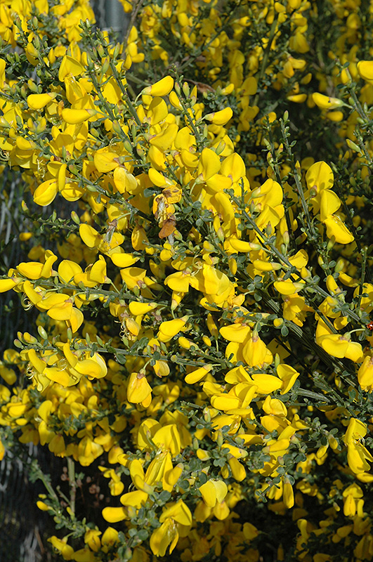 Scotch Broom is blanketed in stunning gold pea-like flowers along the branches from mid to late spring. It has emerald green deciduous foliage. The small compound leaves do not develop any appreciable fall colour. The smooth bark and lime green branches add an interesting dimension to the landscape.