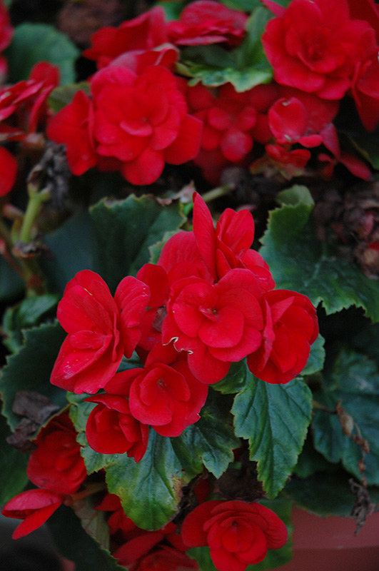 Baladin Begonia features dainty double red frilly flowers at the ends of the stems from mid spring to mid fall. Its succulent heart-shaped leaves remain dark green in colour throughout the year.