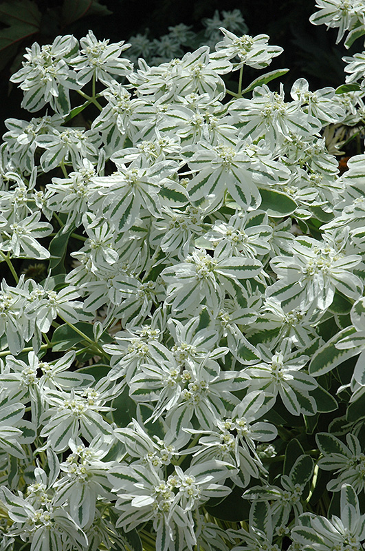 Summer Icicle Spurge features showy cymes of yellow flowers with white bracts at the ends of the stems from late spring to mid fall. The flowers are excellent for cutting. Its attractive oval leaves remain green in colour with distinctive white edges throughout the season.