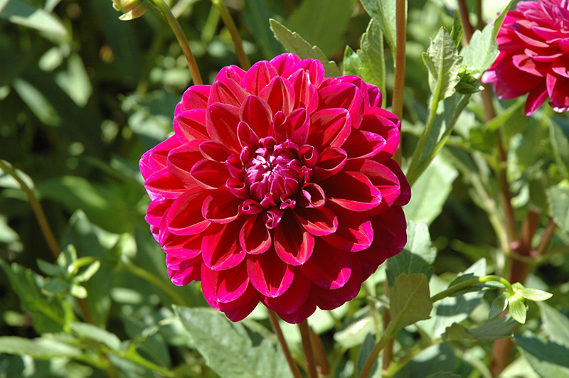 Boogie Nights Dahlia features showy fully double purple daisy flowers at the ends of the stems from mid to late summer. The flowers are excellent for cutting. Its pointy leaves remain green in colour throughout the season.