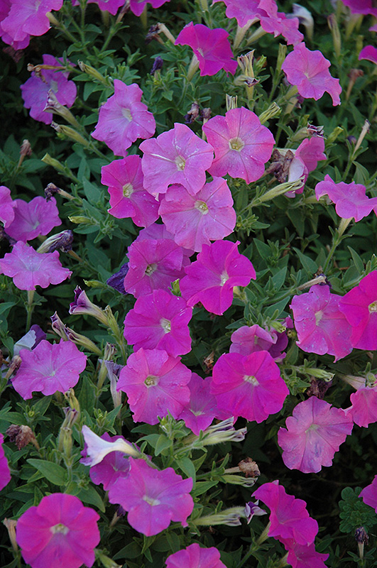 Picobella Cascade Lavender Petunia will grow to be about 10 inches tall at maturity, with a spread of 18 inches. When grown in masses or used as a bedding plant, individual plants should be spaced approximately 15 inches apart. Its foliage tends to remain low and dense right to the ground. This fast-growing annual will normally live for one full growing season, needing replacement the following year.