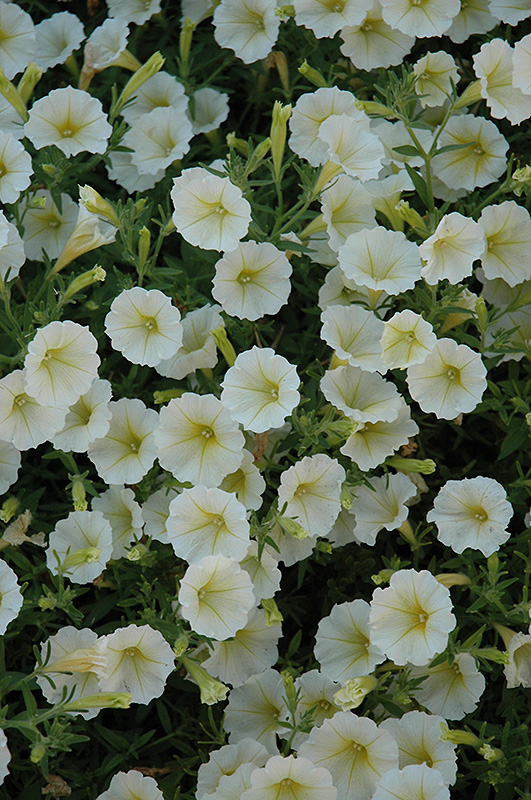 Pop Rocks Yellow Petunia is covered in stunning buttery yellow frilly flowers at the ends of the stems from mid spring to mid fall. Its pointy leaves remain green in colour throughout the season.