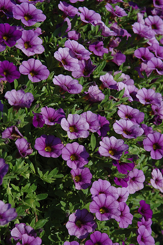 Cabaret® Dark Blue Calibrachoa will grow to be about 10 inches tall at maturity, with a spread of 18 inches. When grown in masses or used as a bedding plant, individual plants should be spaced approximately 12 inches apart. Its foliage tends to remain low and dense right to the ground. This fast-growing annual will normally live for one full growing season, needing replacement the following year.