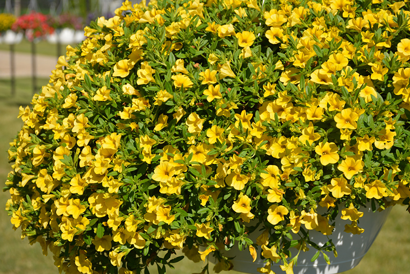 Cabaret® Deep Yellow Calibrachoa is a dense herbaceous annual with a trailing habit of growth, eventually spilling over the edges of hanging baskets and containers. Its medium texture blends into the garden, but can always be balanced by a couple of finer or coarser plants for an effective composition.