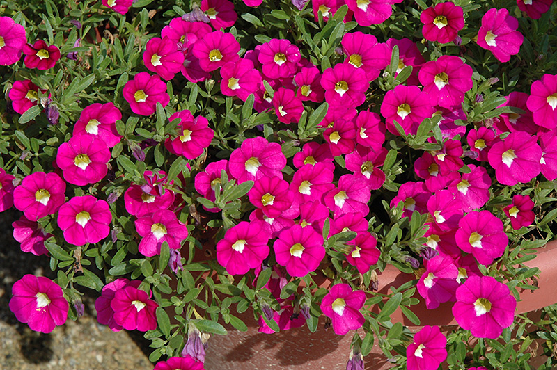Noa® Dark Pink Carnival Calibrachoa is a fine choice for the garden, but it is also a good selection for planting in outdoor containers and hanging baskets. Because of its trailing habit of growth, it is ideally suited for use as a 'spiller' in the 'spiller-thriller-filler' container combination; plant it near the edges where it can spill gracefully over the pot. Note that when growing plants in outdoor containers and baskets, they may require more frequent waterings than they would in the yard or garden.