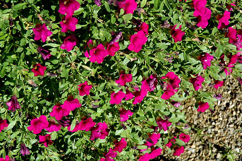 Noa® Dark Purple Calibrachoa is clothed in stunning deep purple trumpet-shaped flowers at the ends of the stems from late spring to early fall. Its small pointy leaves remain green in colour throughout the season.